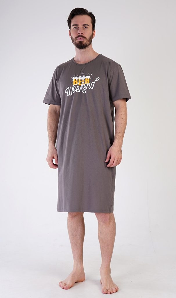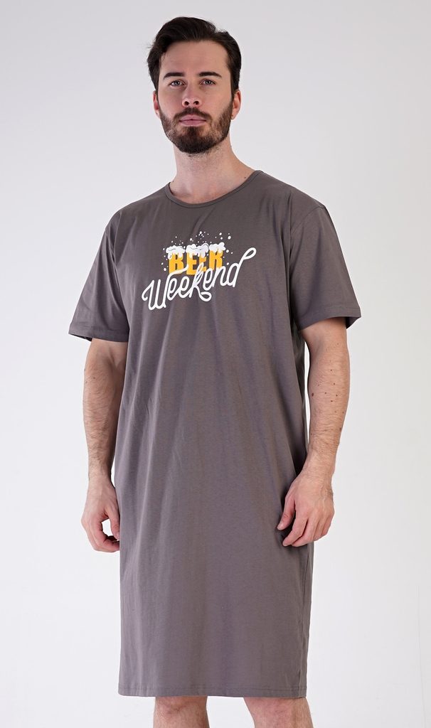 Pánská noční košile s krátkým rukávem Beer weekend - tmavě šedá