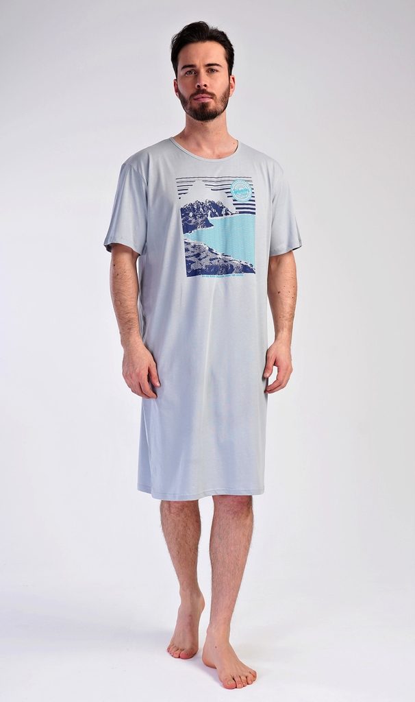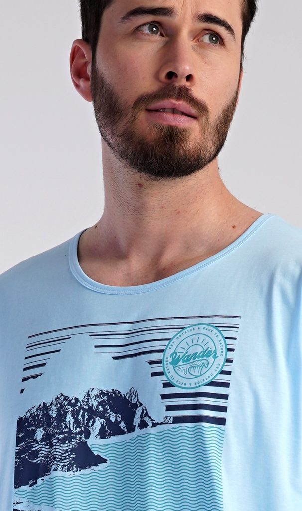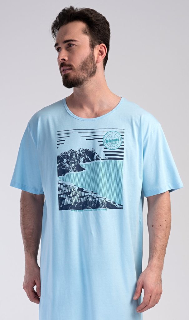 Pánská noční košile s krátkým rukávem Wander - světle modrá