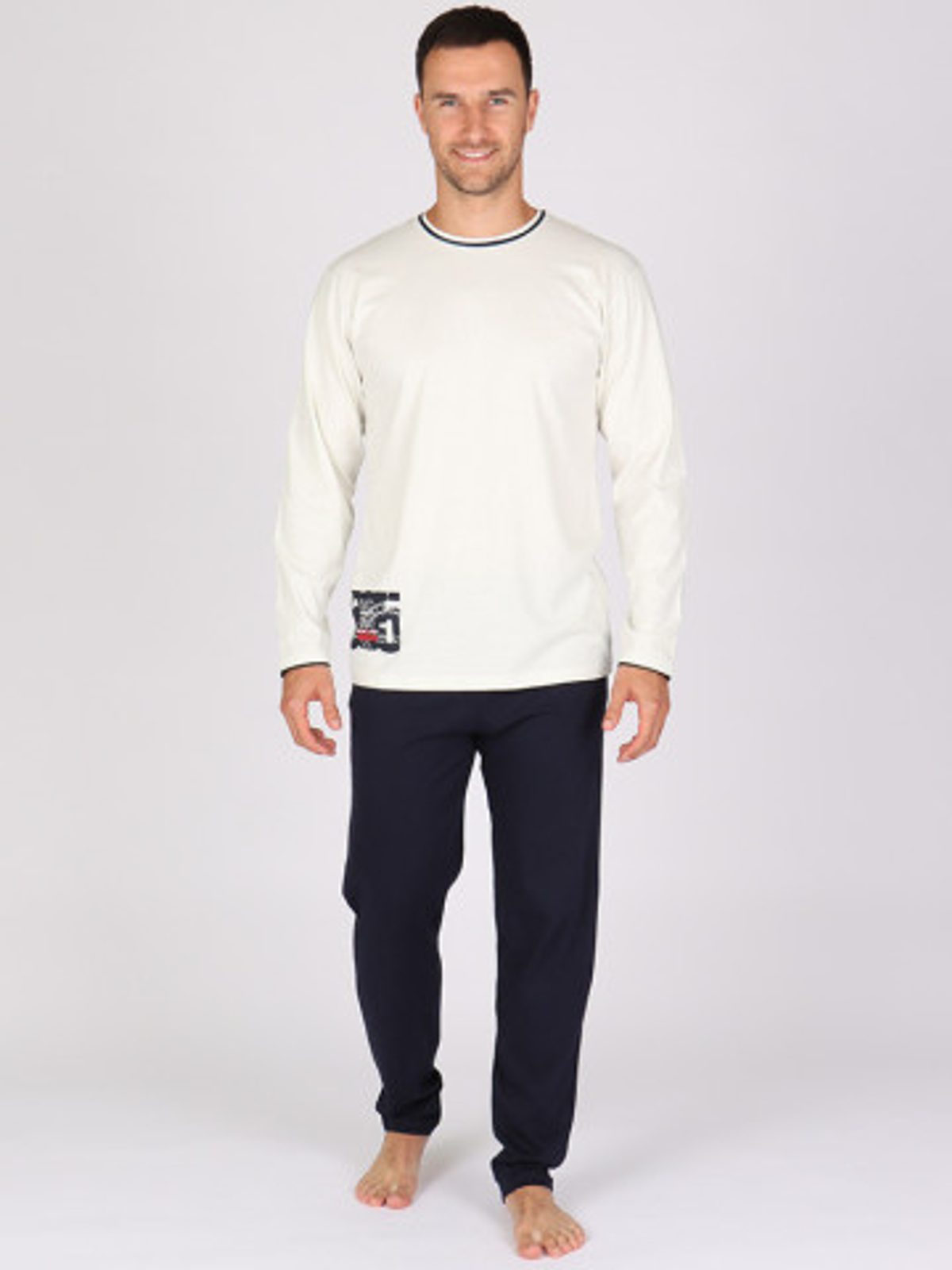 Pohodlné pánské dlouhé pyžamo P HELMUT z čisté bavlny je příjemné na tělo. Pyžamo se skládá z jednobarevného trika s potiskem a z jednobarevných kalhot s dlouhou nohavicí. Je ideální na chladnější roční období.