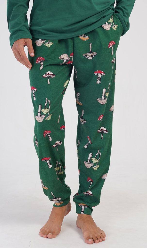 Pánské pyžamo dlouhé Muchomůrky - tmavě zelená