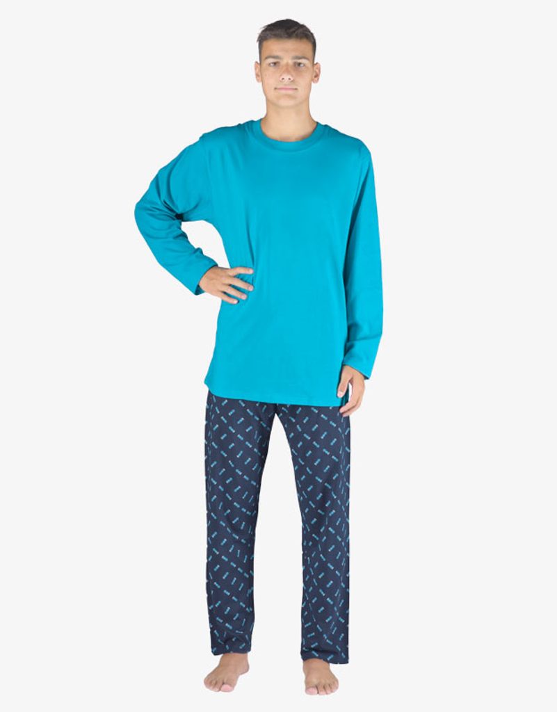 Pyžamo dlouhé pánské, šité, s potiskem, kód 79147. Složení: 100% Bavlna