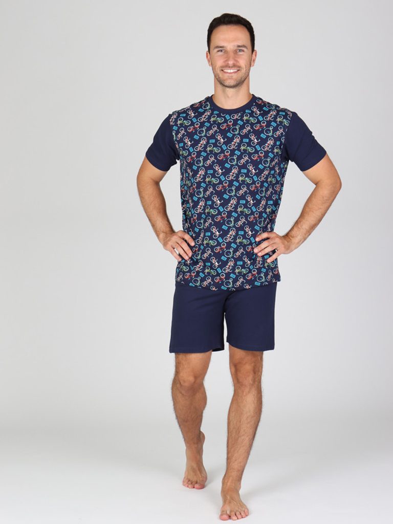Pánské krátké pyžamo JANATAN si zamilují všichni milovníci kol a cyklistiky. Pohodlné bavlněné pánské krátké pyžamo se skládá z trika s potiskem a krátkých kalhot.