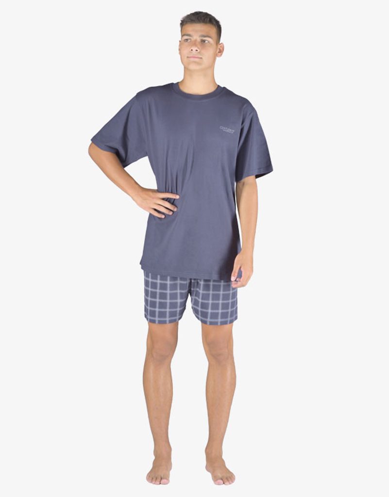 Pánské pyžamo krátké pánské, šité, s potiskem Pyžama 2023 79152P - tm.popel sv. šedá