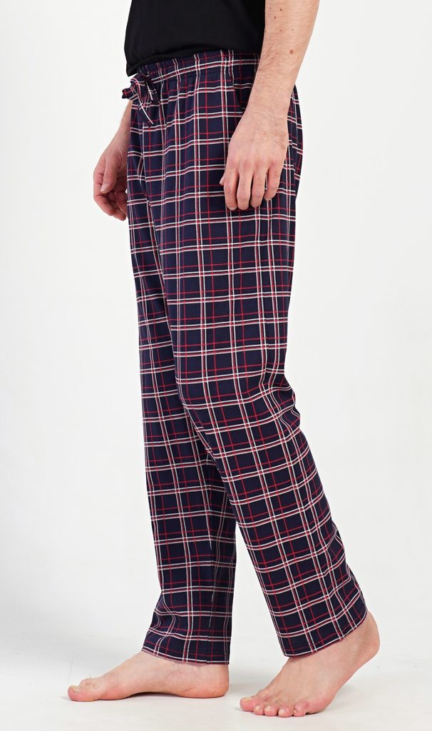 Pánské bavlněné pyžamové kalhoty Karlos. Kostkované kalhoty mají v pase gumu, šňůrku na stažení a praktické kapsy. Mateiriál s podílem bavlny 100% je příjemný a poddajný na dotek.