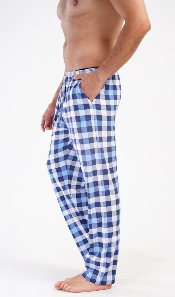 Pánské bavlněné pyžamové kalhoty Sebastian. Kostkované kalhoty mají v pase gumu, šňůrku na stažení a praktické kapsy. Mateiriál s podílem bavlny 100% je příjemný a poddajný na dotek. Kalhoty jsou vhodné i na denní nošení.