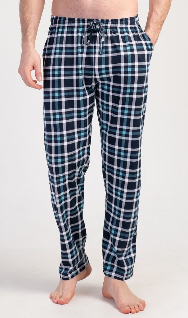 Pánské bavlněné pyžamové kalhoty Simon. Kostkované kalhoty mají v pase gumu, šňůrku na stažení a praktické kapsy. Mateiriál s podílem bavlny 100% je příjemný a poddajný na dotek.