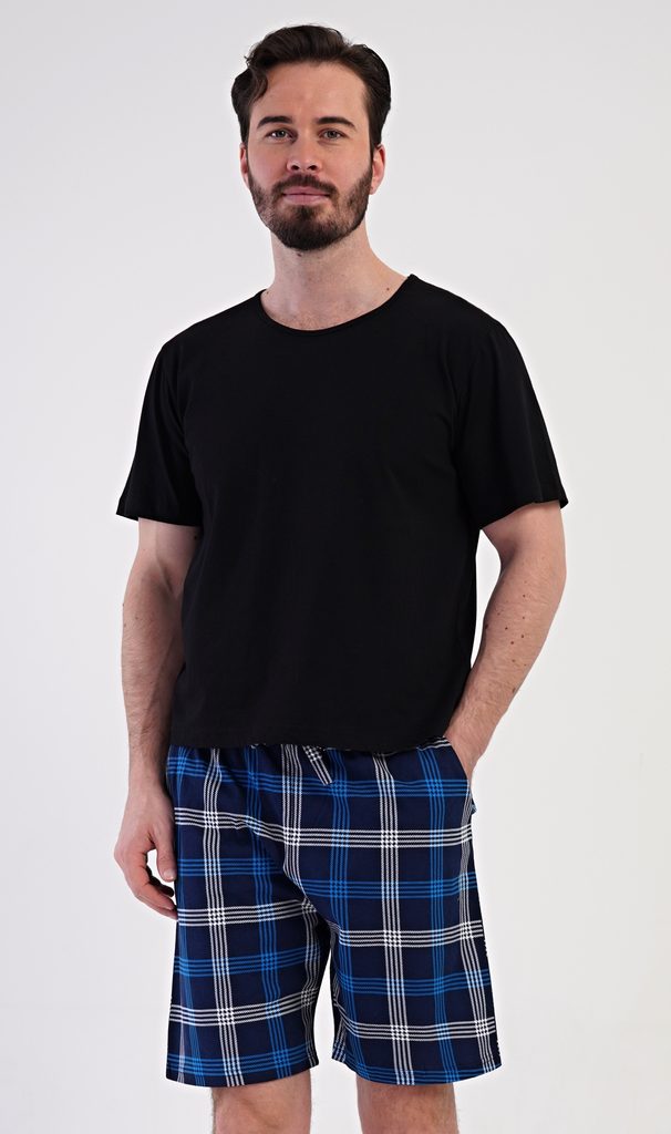 Pánské bavlněné pyžamové šortky Matěj. Kostkované šortky mají v pase gumu, šňůrku na stažení a praktické kapsy. Mateiriál s podílem bavlny 100% je příjemný a poddajný na dotek. Pyžamové šortky jsou vhodné i na denní nošení pro volnočasové aktivity.
