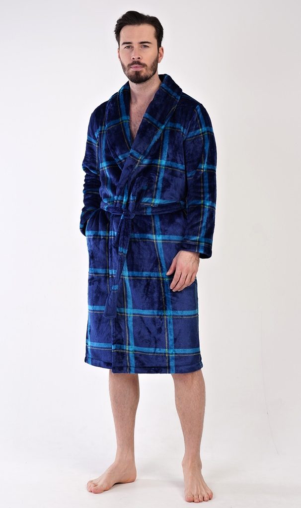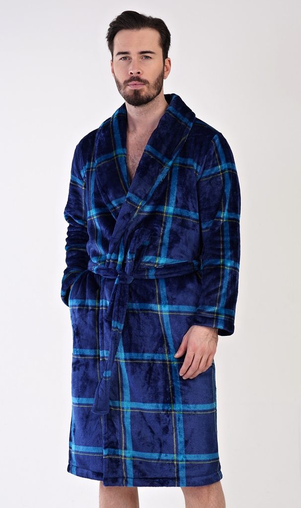 Pánský softový župan se šálovým límcem Richard. Župan má šálový límec, praktické kapsy a pásek ke stažení. Je zdobený motivem kostky v odstínech modré barvy. Použitý softový materiál je jemný a poddajný na dotek. Župan Vás zahřeje cestou z koupelny i při lenošení na gauči, bude to Váš milý společník v chladných dnech.