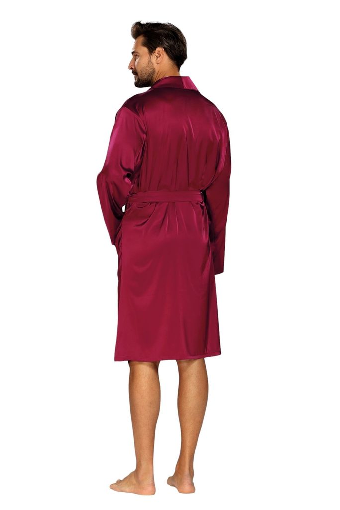 Panský saténový župan Lukas v bohaté bordó barvě. Má kapsy a je zavinovací.