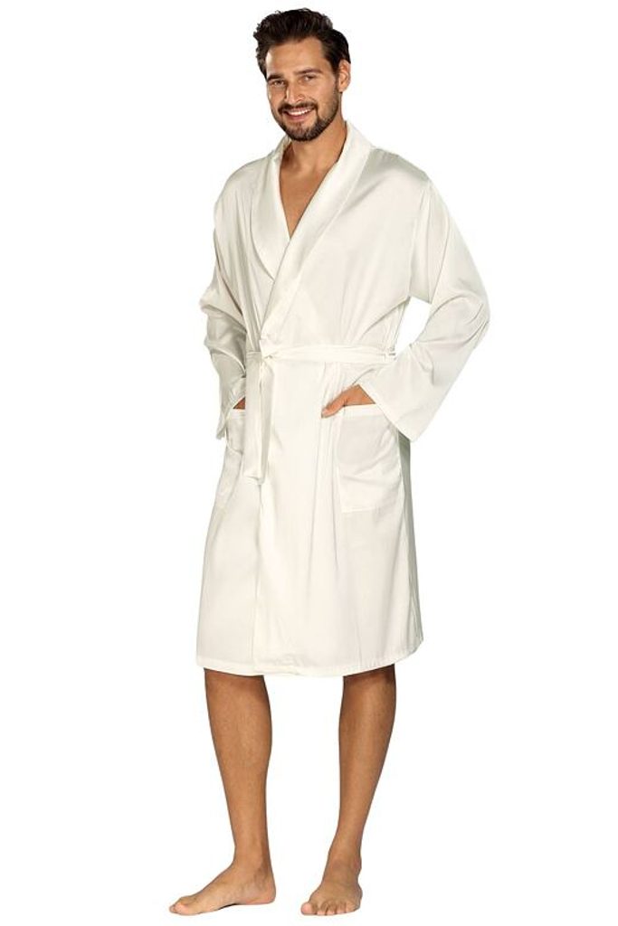 Saténový župan v bílé barvě působí stylově a dobře se hodí k pánskému pyžamu Lukas bílý.