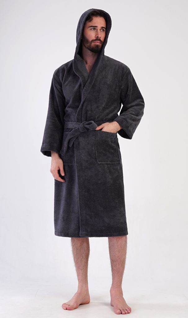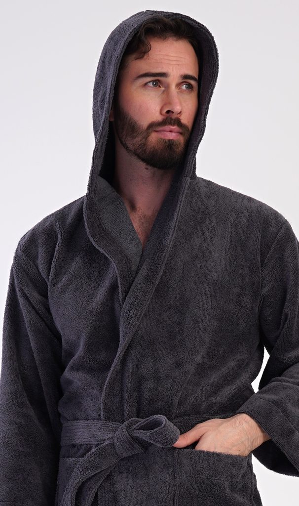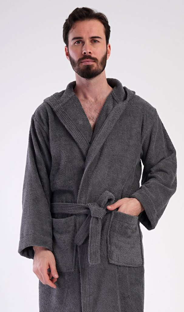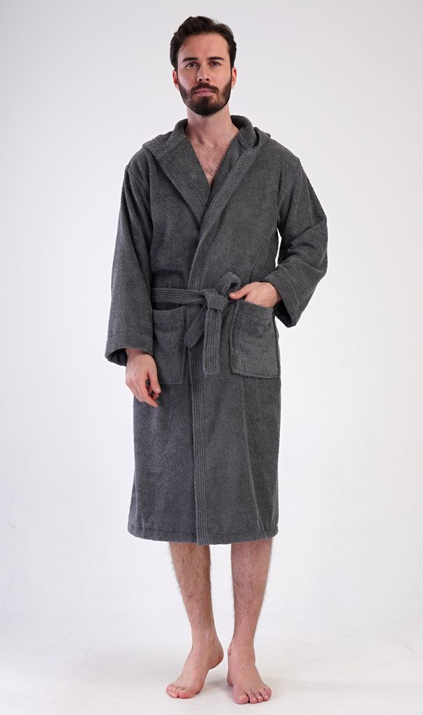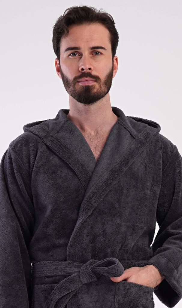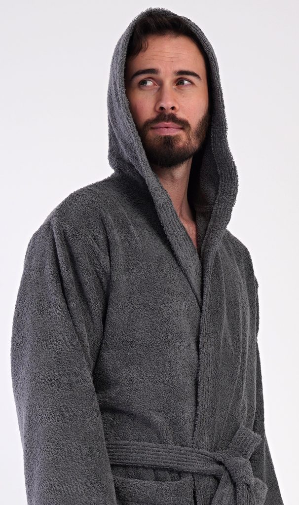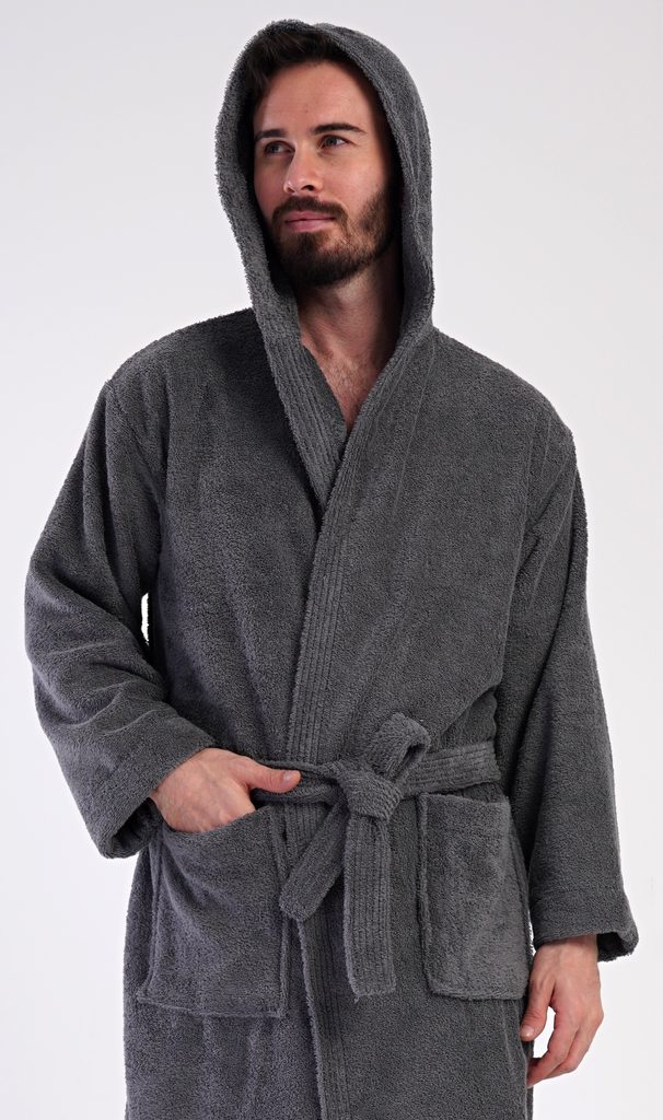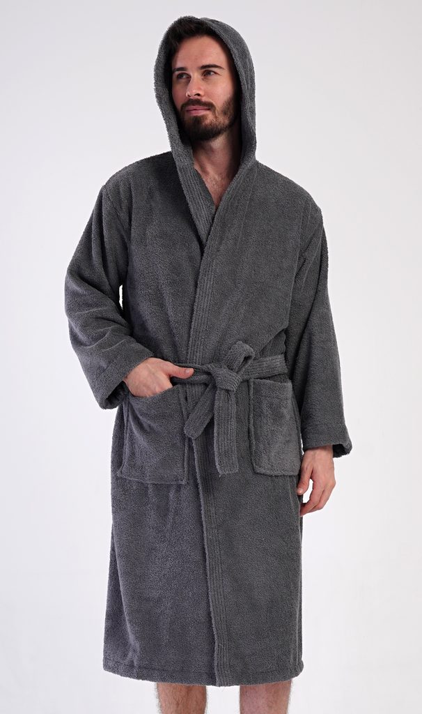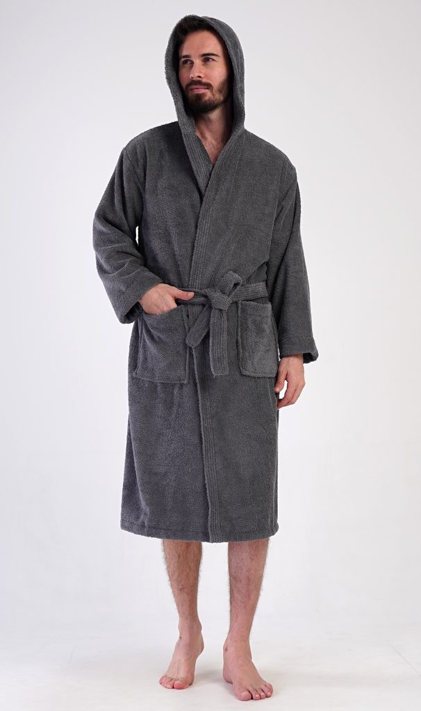Pánský bavlněný froté župan s kapucí Alex. Pánský dlouhý župan s kapucí a páskem ke stažení je vhodný po koupeli i na povalování se doma na gauči. Froté župan má praktické kapsy, které oceníte při návštěvě wellness. Použitý bavlněný materiál je příjemný a poddajný na dotek.